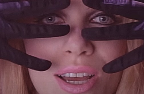 The video for Eurythmics’ electro-torch masterpiece “Who’s That Girl?” is set in a dimly lit nightclub where Annie Lennox plays a tormented chanteuse. Her lover, played by Dave Stewart, cavorts with other women who just happen to resemble famous real-life celebrities such as Elizabeth Taylor, Meryl Streep and Debbie Harry. Guest cameos by Bananarama and cross-dressing singer Marilyn as some of Dave’s paramours adds to the fun. Annie has the last laugh when she hooks up with a stranger who has been watching her performance in the audience (played by Eurythmics’ graphic designer Laurence Stevens). She raised eyebrows at the end of the video by playing not only herself, but then her love interest as well, culminating in the jaw-dropping shot of Annie kissing “herself”, then sarcastically winking at the camera. The art direction and costuming have a 1960s vibe and with its soap-opera overtones, the video seems a nod to the often campy and melodramatic movies of the same era. Filmed on June 10, 1983 in London.